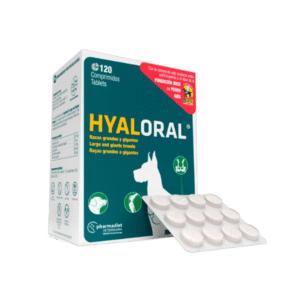 Condroprotector para perros de razas grandes y gigantes, cuya composición, con colágeno hidrolizado enzimáticamente, glucosamina hidrolizada, condroitín sulfato, ácido hialurónico obtenido por proceso biotecnológico y gamma orizanol, contribuye a la regeneración del cartílago hialino, la lubricación articular, el refuerzo de los tendones y ligamentos y la disminución de la inflamación y el dolor, de manera que mejora la movilidad y la calidad de vida. La edad, el sobrepeso o el ejercicio excesivo son factores de riesgo importantes que pueden conllevar la aparición de enfermedades articulares. Mejora todos los síntomas de displasia: desaparición absoluta de la cojera y mejora significativa del grado de movilidad y de hinchazón articular. Composición Ácido hialurónico (20mg), colágeno hidrolizado enzimáticamente de alta pureza (2,20g), glucosamina (313mg), sulfato de conindritina (200mg) y gamma oryzanol (100mg). Componentes analíticos Proteína bruta 56% Grasa bruta 1.7% Fibra bruta 23% Ceniza bruta 3.5% Dosificación y uso 1 comprimido por cada 20 kg de peso. A partir de los 40 Kg. de peso, 2 comprimidos en una sola toma. Se recomienda incorporar a la dieta durante un mínimo de 3 meses. Al tratarse de un alimento complementario se puede tomar de manera ininterrumpida.
