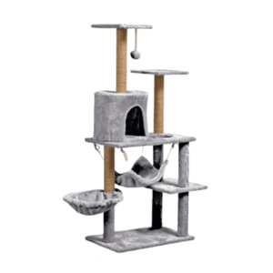 El corazón de esta torre es su poste rascador revestido en sisal, un material duradero que resiste las garras más afiladas, protegiendo tus muebles y permitiendo que tu gato mantenga sus uñas en perfecto estado. Su diseño elegante y moderno no solo es un refugio para tu gato, sino que también se integra armoniosamente con cualquier estilo de decoración interior, demostrando que el amor por tu mascota puede coexistir perfectamente con el gusto estético.