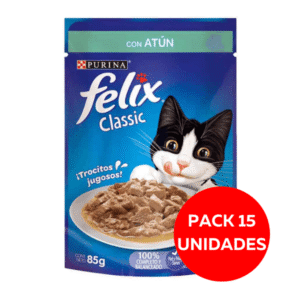 Este producto está disponible en prácticos sobres de 85g, ideales para una porción. Felix Classic es una marca comprometida con la felicidad y bienestar de tu gato.