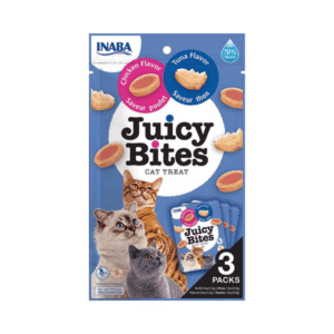 Juicy Bites Pollo y Atún son bocaditos blandos húmedos y sazonados con sabores naturales, extracto de té verde y vitamina E.