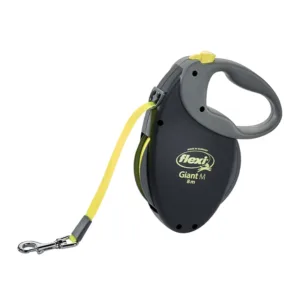 - Flexi Giant Negro es una correa retráctil formulada para perros, presentada en color negro y tamaño extra large, con una longitud de 8 metros.