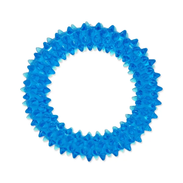 El Aro de Goma para Cachorros Dog Fantasy Azul de 7 cm es el juguete ideal para acompañar la etapa de crecimiento de tu perrito. Está fabricado en goma resistente pero suave, con una textura que alivia la incomodidad por la dentición y estimula el juego activo. Su forma circular es perfecta para mordisquear, lanzar y atrapar, promoviendo el desarrollo físico y reduciendo el estrés. Recomendado para razas pequeñas o medianas.