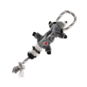 El juguete para perros Dog Fantasy Skinneeez TUGS Mapache de 35 cm es la combinación perfecta entre un peluche suave y un resistente juguete interactivo. Su diseño sin relleno evita el caos típico de los juguetes rellenos, manteniendo tu casa limpia incluso con los perros más enérgicos. Las cuerdas tejidas en sus extremos permiten jugar al tira y afloja, fortaleciendo el vínculo con tu peludo mientras lo mantiene activo. Es liviano, seguro y atractivo gracias a su forma de mapache realista que cautivará a cualquier perro. Una excelente opción para juegos dentro de casa.