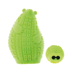 Fabricado con goma resistente y flexible, este juguete es seguro para masticar y ayuda a mejorar la higiene dental gracias a su textura con relieve, que masajea las encías y limpia los dientes mientras tu perro juega. Su tamaño compacto lo hace ideal para perros pequeños que disfrutan de juguetes interactivos y recompensas.
