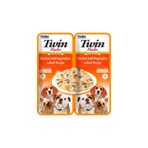 Churu Twins Packs Chicken with Vegetables & Beef Recipe Canine es una combinación de pollo fresco y suculento caldo natural, elaborado con ingredientes de grado humano. Churu Twins Packs Chicken with Vegetables & Beef Recipe Canine es un snack libre de granos, colorantes, preservantes artificiales y sal añadida, además fortalecido con Vitamina E y té verde.