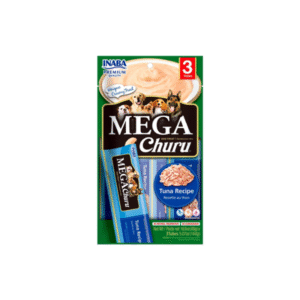 - Cada delicioso tubo del Mega Churu de atún 3P contiene 91% de humedad y solo 20 calorías. Guárdelo en el congelador para realizar caminatas de verano, viajes al parque o caminatas y brindé a su cachorro un refrigerio saludable, frío e hidratante.