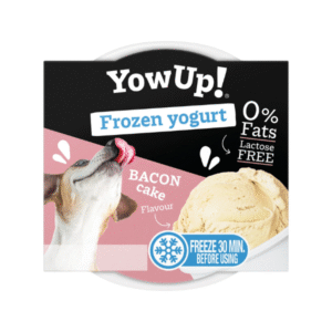 Ingredientes: Productos lácteos fermentados (Yogur sin lactosa) 93,8%, almidón de maíz, pectina. Aditivos: Aromatizante de pastel de bacon 1000 mg/kg y Aditivo nutricional/kg: Vitamina E (3a700) 200 UI. Analisis Garantizado: Proteína bruta: 3,1%, Fibras brutas: 0,4%, Grasa bruta: 0,1%, Cenizas brutas: 0,7%, Humedad: 86,4%, Lactosa